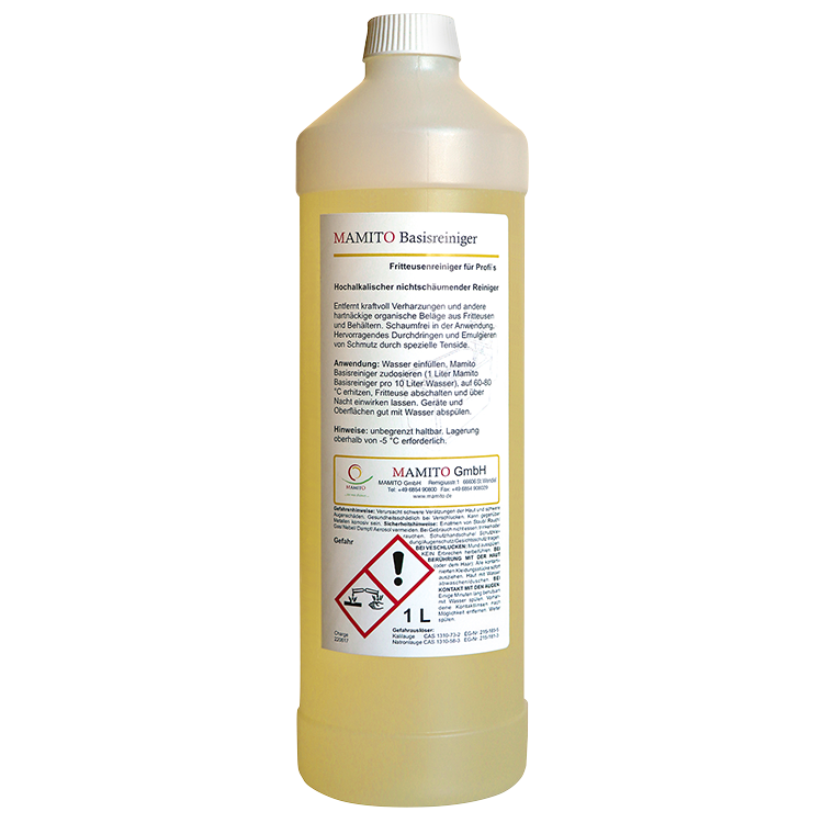Über eine lange Lebensdauer Ihres Frittierfettes und eine optimale Produktqualität entscheidet auch der Zustand Ihrer Fritteuse. Deswegen sollten Sie regelmässig eine Grundreinigung Ihrer Fritteuse vornehmen. Zur umfassenden Grundreinigung Ihrer Fritteuse bietet sich der Mamito Basisreiniger an. Über Nacht löst dieser alle alten Verharzungen aus Ihrer Fritteuse, sodass Sie danach mit einer "neuen" Fritteuse arbeiten können.